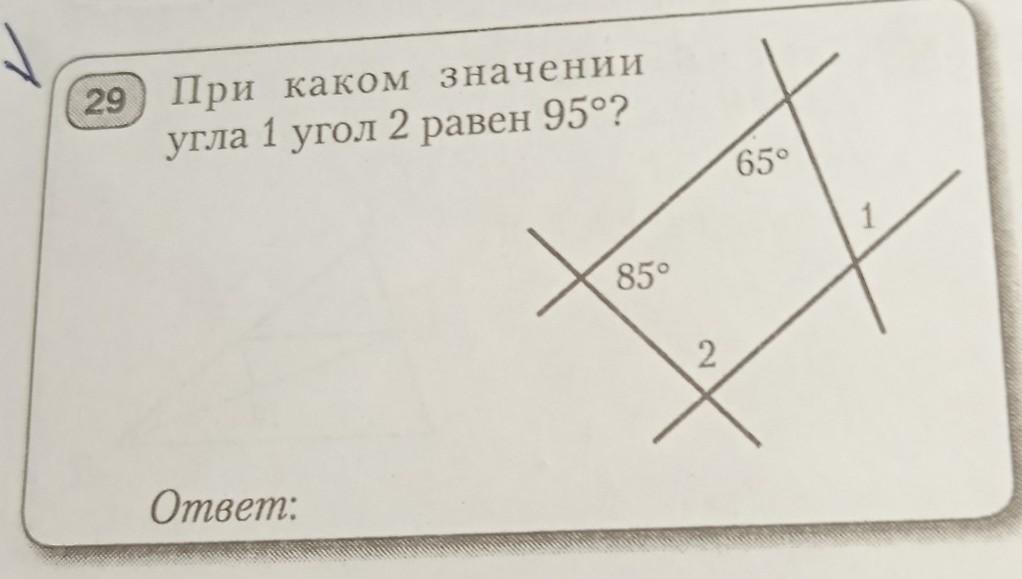 Ответ: Угол 1 равен 65°, тогда угол 2 равен 95°