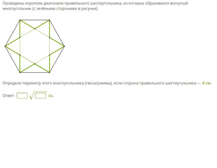 Данный многоугольника (шестиконечная звезда) имеет 12 сторон, а значит его периметр: