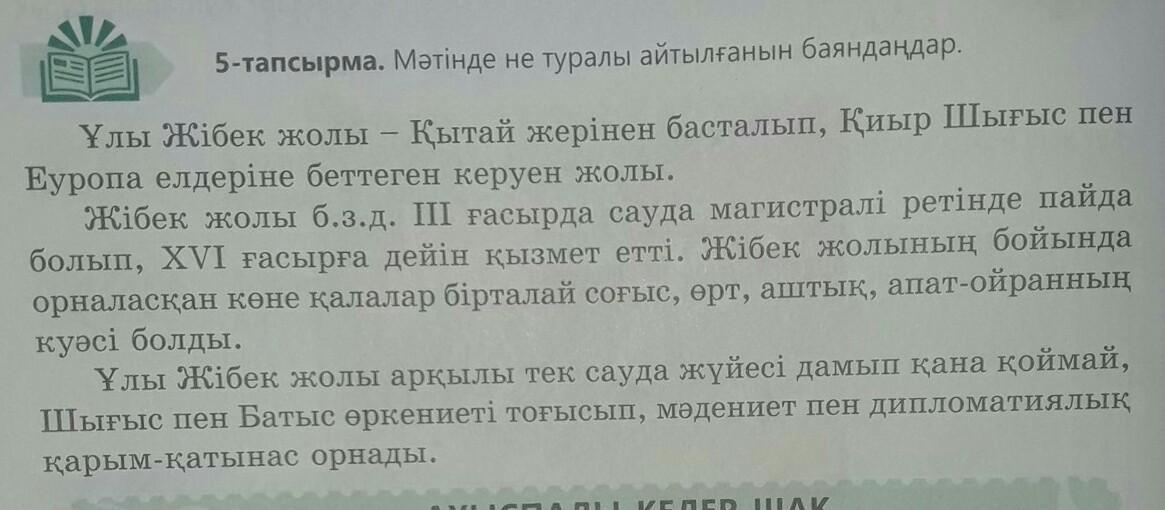 1.Мәтінде Ұлы Жібек жолы туралы айтылған.