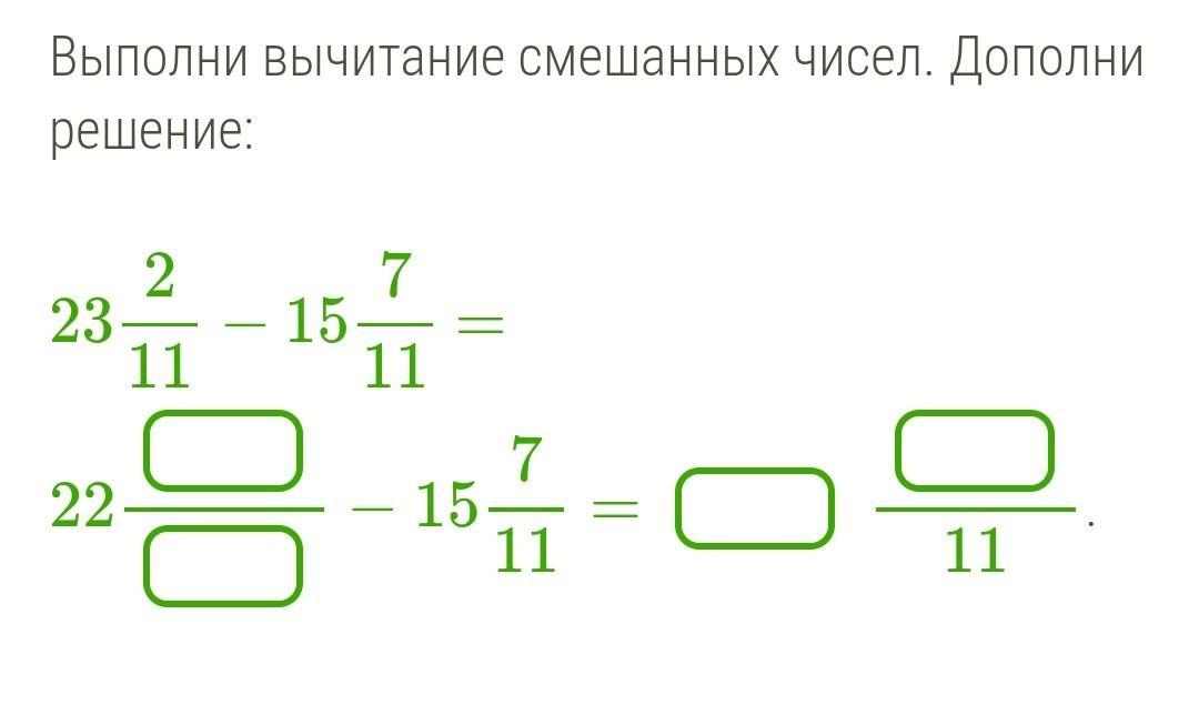 Выполни вычитание смешанных чисел. Дополни решение: ПОМОГИТЕ ПОЖАЛУЙСТА​
