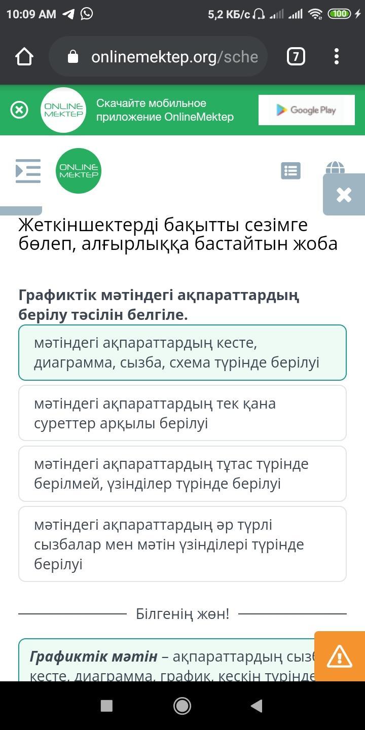 Мәтіндегі ақпараттардың кесте, диаграмма, сызба,схема түрінде берулуі
