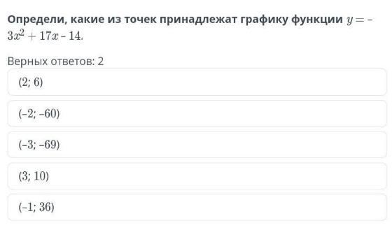 определи какие из точек принадлежат графику функции y=-3x^2+17x-14