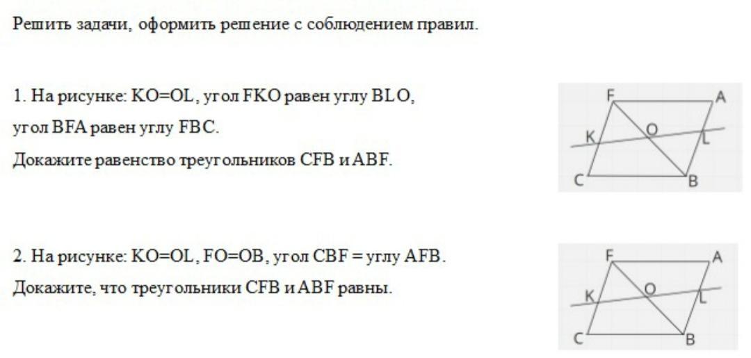 ├ █(Дано: KO=OL@∡FKO=∡BLO@∡BFA=∡FBC)]Доказать ΔCFB=ΔABF