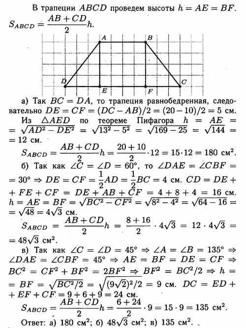 если: а) АВ = 10 см, ВС = DA = 13 см, сD = 20 см; б) ZCZD =
