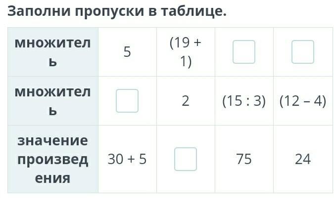 - множитель: 7 , 2 , (15:3) , (12-4)