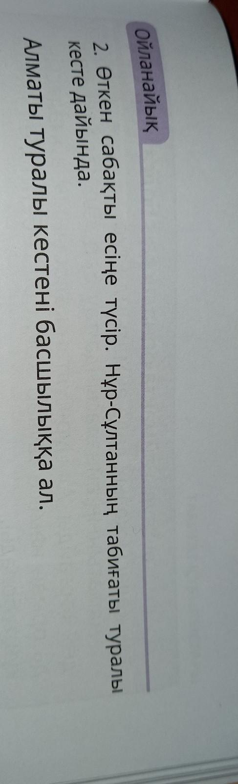2. Өткен сабақты есіңе түсір. Нұр-Сұлтанның табиғаты туралы