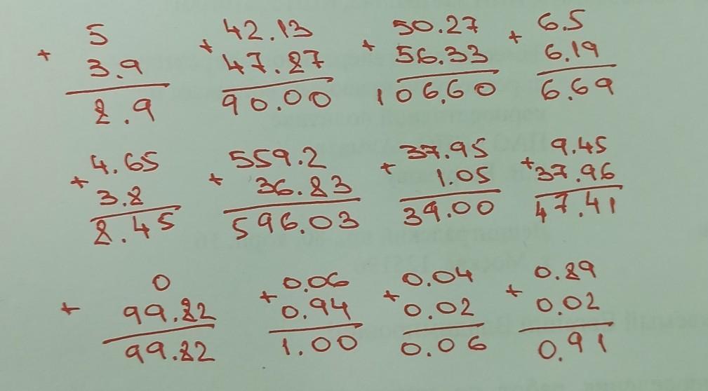 Записываешь в столбик, запятая под запятой. Затем складываешь как обычно. И в конце сносишь запятую.