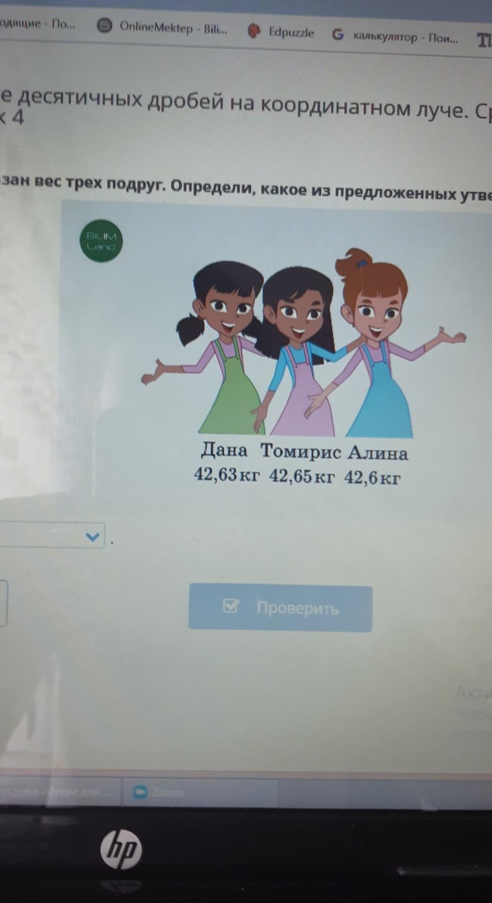 На рисунке показан вес трех подруг. Определи, какое из предложенных утверждений - неверное.
