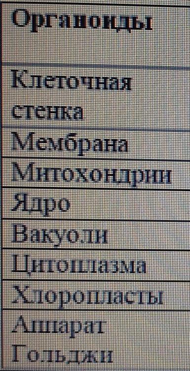 растительное:клеточная стенка, ядро, цитоплазма, хлоропласты,