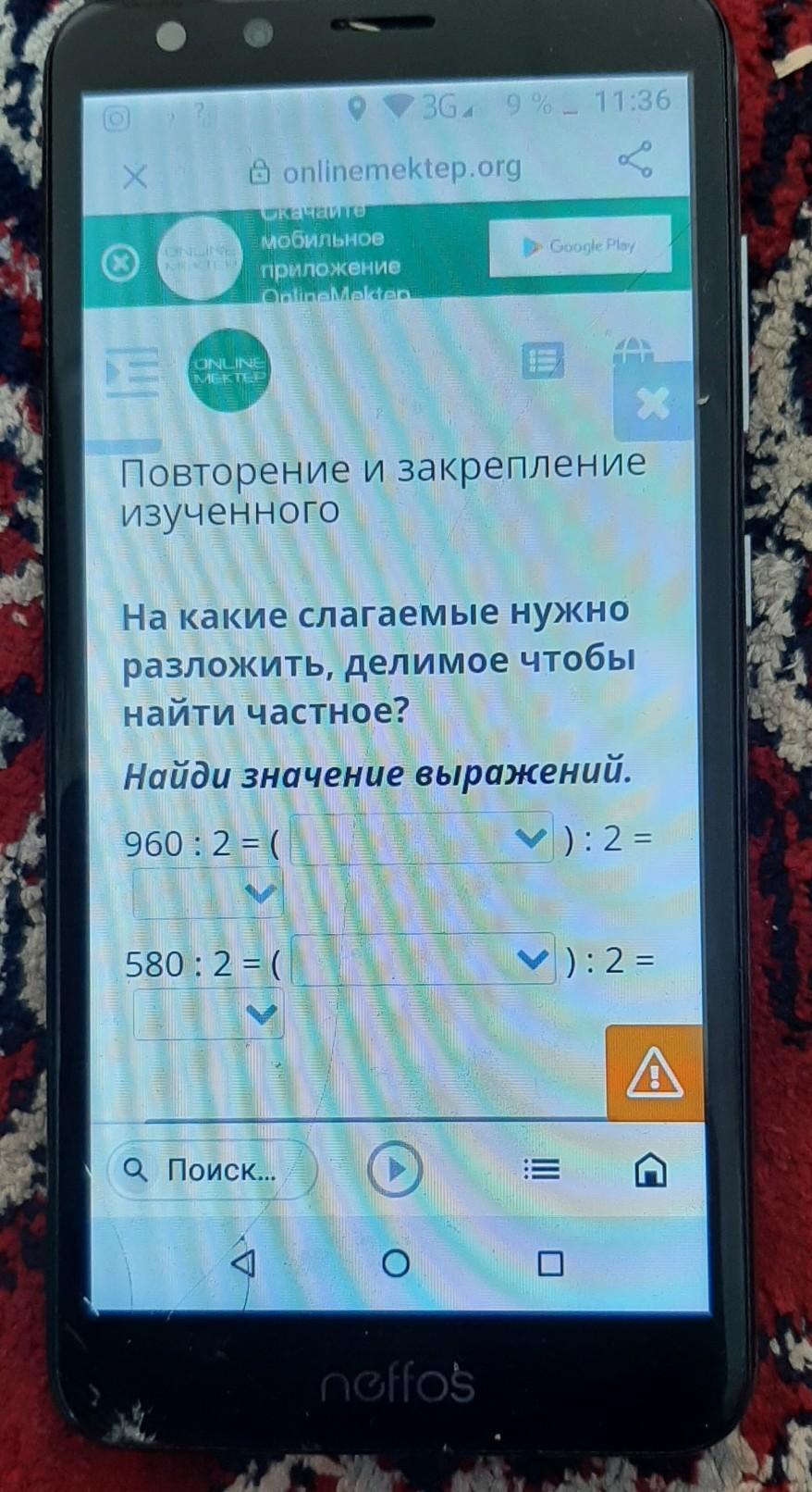 повторение и закрепление изученного На какие слагаемые нужно разложить делимое чтобы найти частное Найди значение выражения 960 / 2 равно / 2 равно 580 / 2 равно / 2 равно