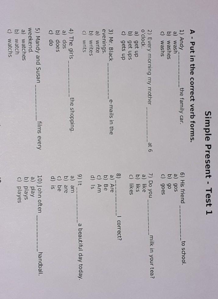 A- Put in the correct verb forms.