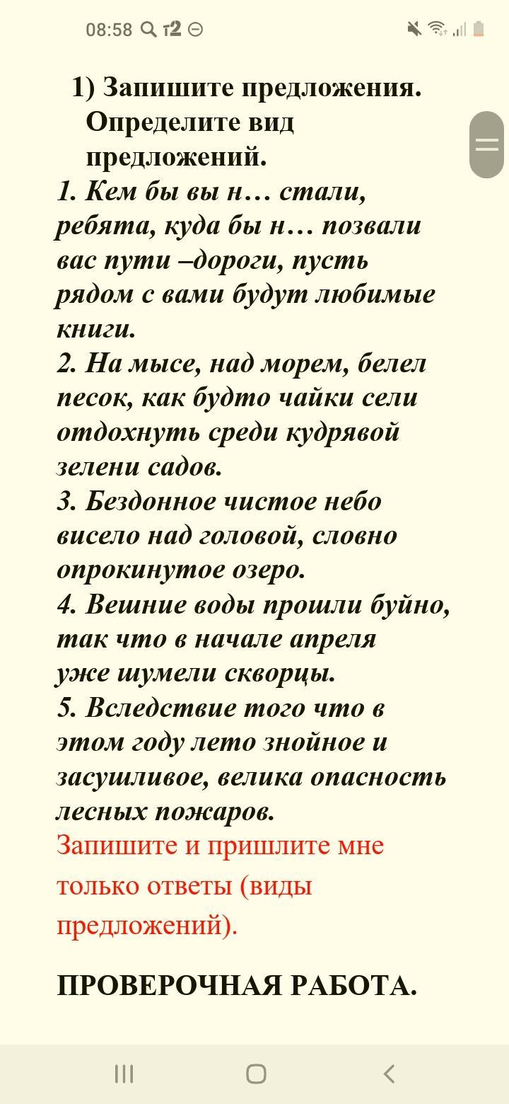1.побудительное.восклицательное.2.повествовательное.не воскл.3.повествовательное4.повествовательное не воскл.5.повествовательное.восклицательное.
