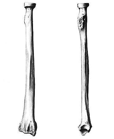 На изображении представлена лучевая кость. которая вместе с локтевой формирует скелет предплечья