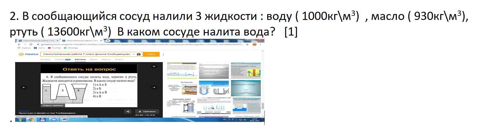 ртуть ( 13600кг\м3) В каком сосуде налита вода? [1]