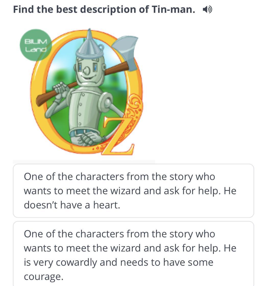 ** У железного дровосека из сказки проблема, он хочет попросить у волшебника сердце)) а Лев - смелость