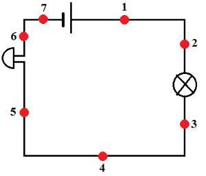 Укажи, в каком направлении течёт ток в точке 7.