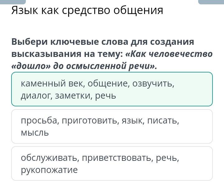 Ответ: каменный век, общение, озвучить, диалог, заметки, речь