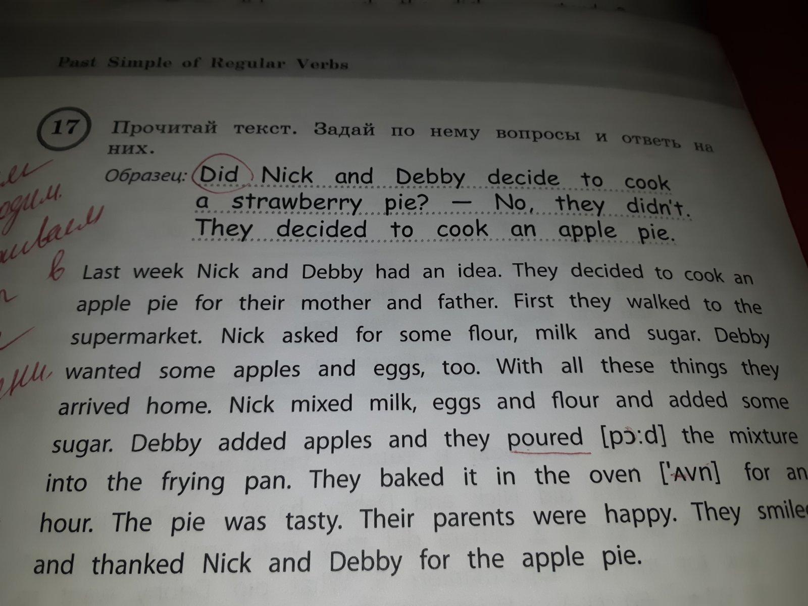 had, decided, walked, asked, wanted, arrived, mixed, added, added, poured, baked, was, were, smiled, thanked