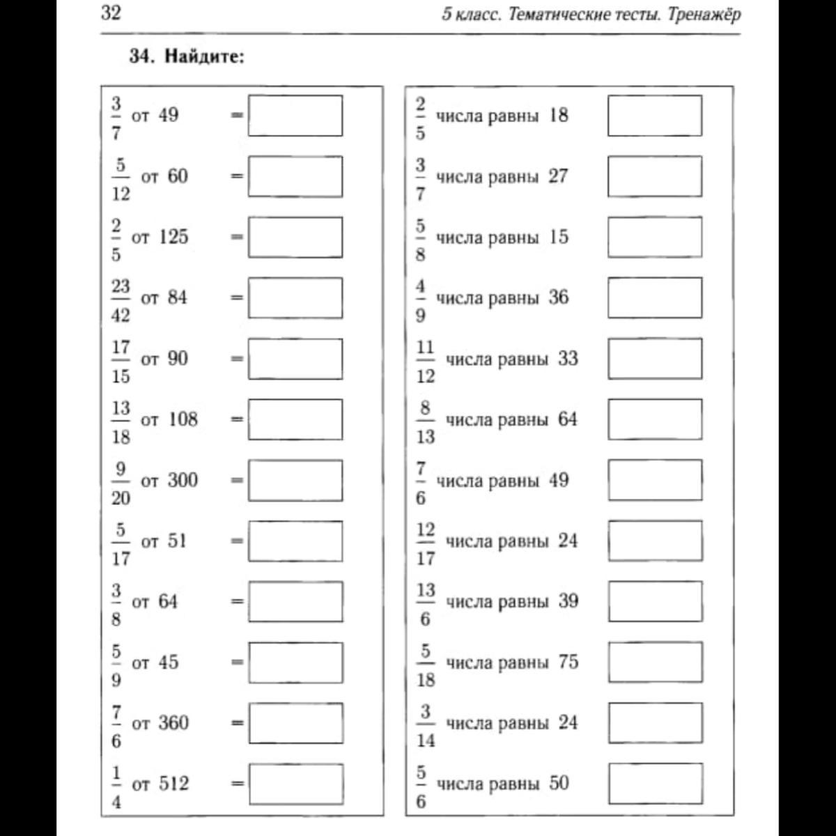 Во втором столбике находим число по его части. Например 5/6 от 50.