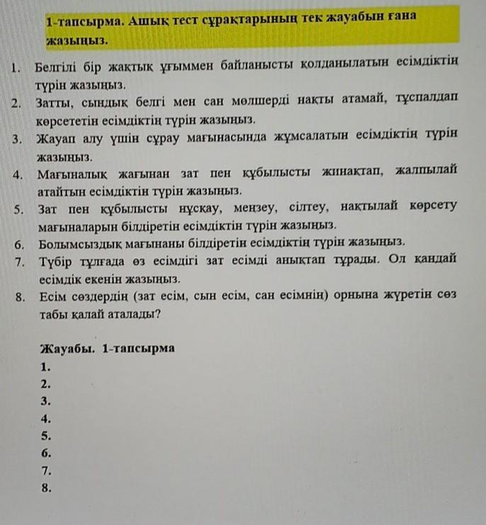 1-тапсырма. Ашық тест сұрақтарының тек жауабын ғана