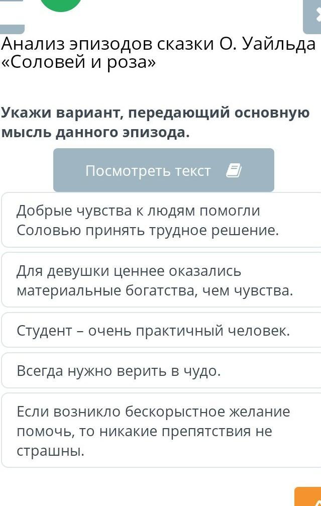 Анализ эпизодов сказки О. Уайльда «Соловей и роза» укажи вариант передающий основную мысль данного эпизода
