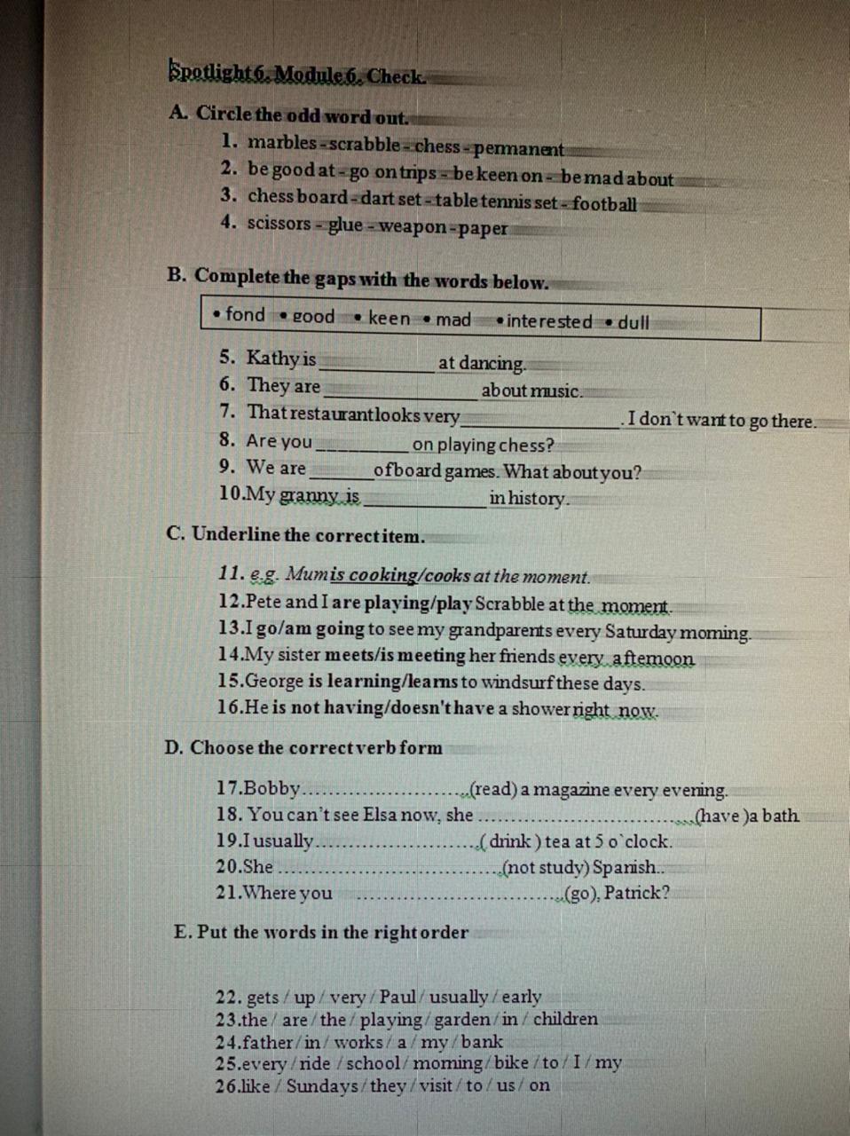 24. My father works in a bank.