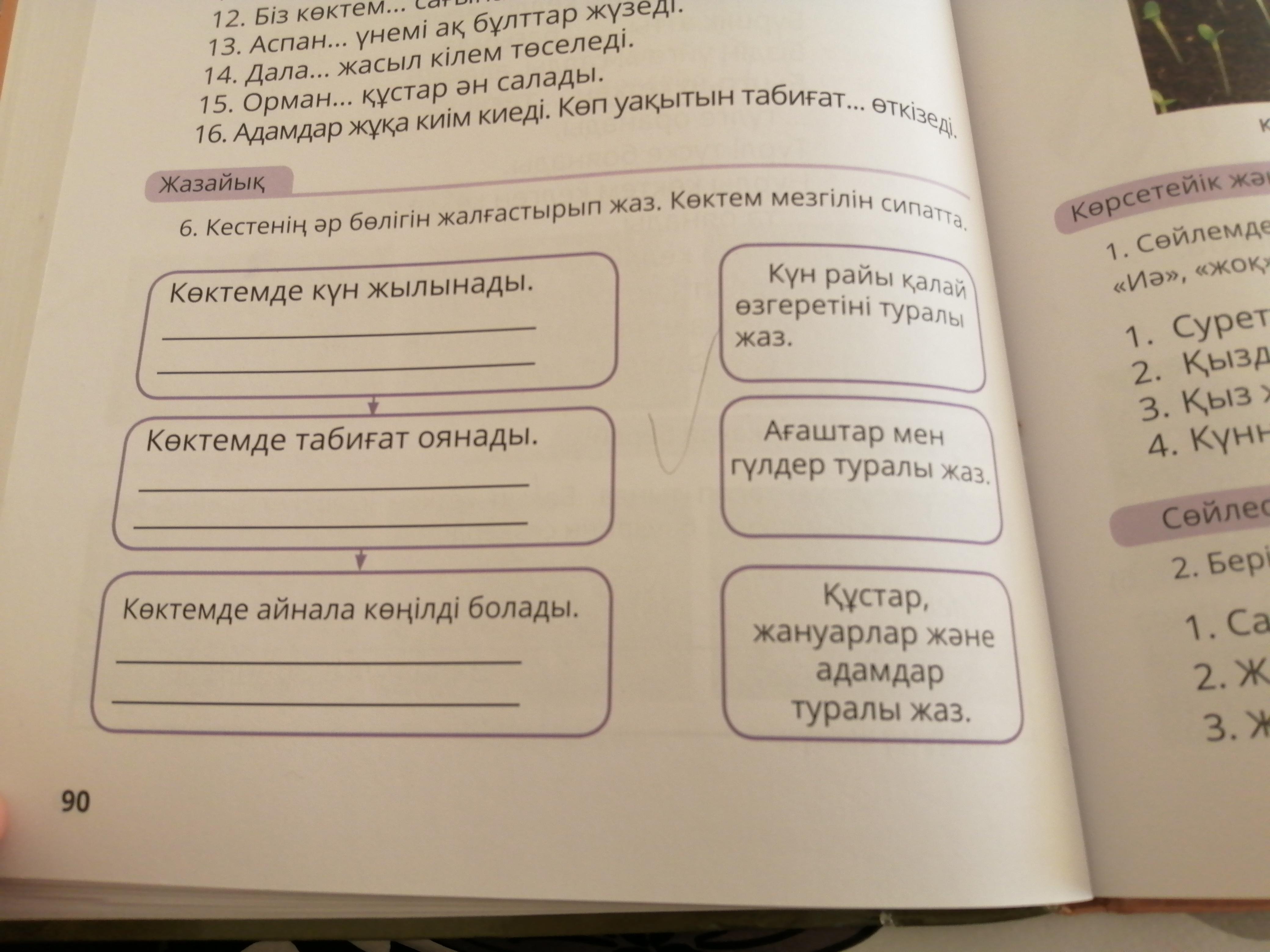 3)Көктемде жан-жануарлар оянады.Жыл құстары оралады.Барлық адамдар қуанады