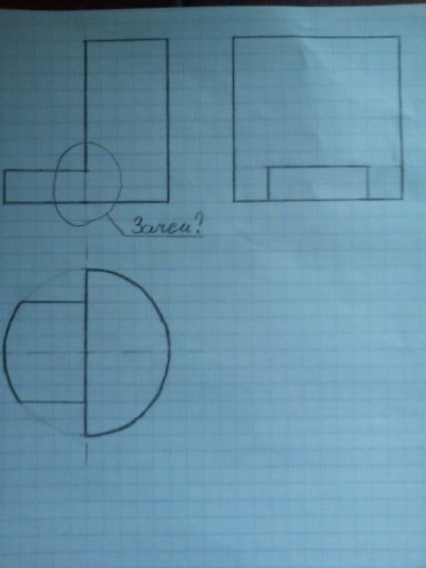 Дальше я не совсем понимаю зачем вам разрез по середине на первом виде(2-е фото), так как если он есть, то на втором виде(окружность), должна быть указана глубина выреза... Например(3-е фото) это только пример, 3-е фото ненужно срисовывать себе.