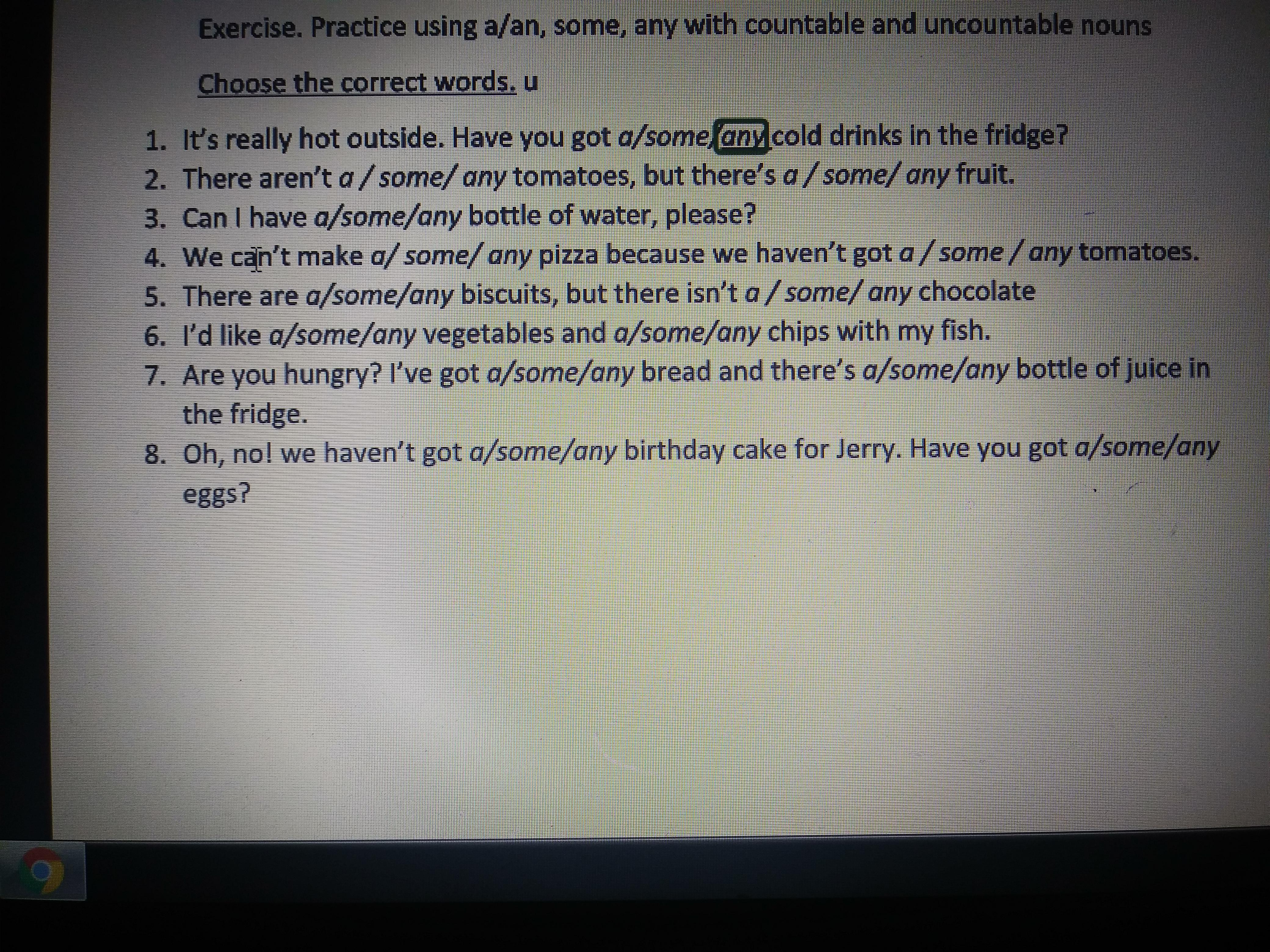 3. a 4.A/any 5.Some/any 6.Some/some 7.Some/a 8.Any/any