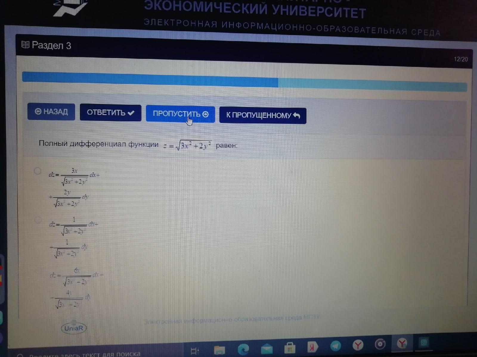 полный дифференциал функции z =√3x^2+2y^2 равен?