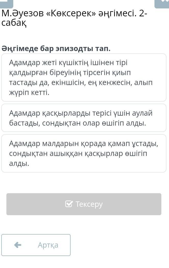 - Адамдар жеті күшік ын ішінен тірі қалдырған біреуінің тірсегін қиып тастады да, екіншісін, ең кенжесін, алып жүріп кетті