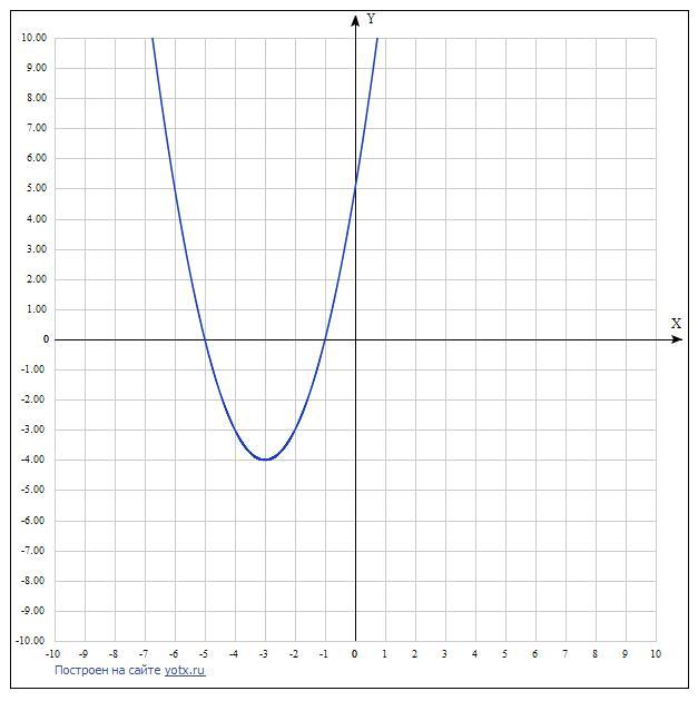це парабола вітками догорипо теоремі Вієта корні -5 та -1 дивись графік у≤0 при х ∈ [-5;-1]