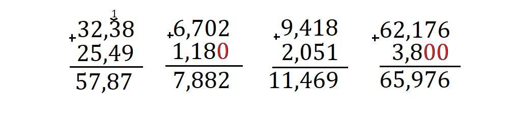 1) 57,87; 2) 7,882; 3)11,468; 4) 65,976.