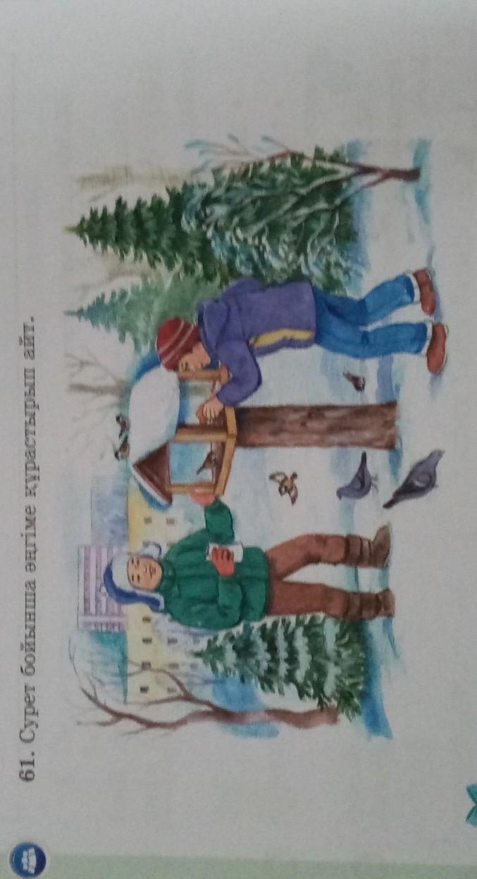 Қыс келді.Марат пен Алмас жан-жануарларға көмектесу керектігін ойлады. Сөйтіп олар құстарға ұя жасап,жем берді.Құстар оларға риза болды.Құстар ризалығын білдіру үшін Алмас пен Маратқа ылғый келіп тұрды