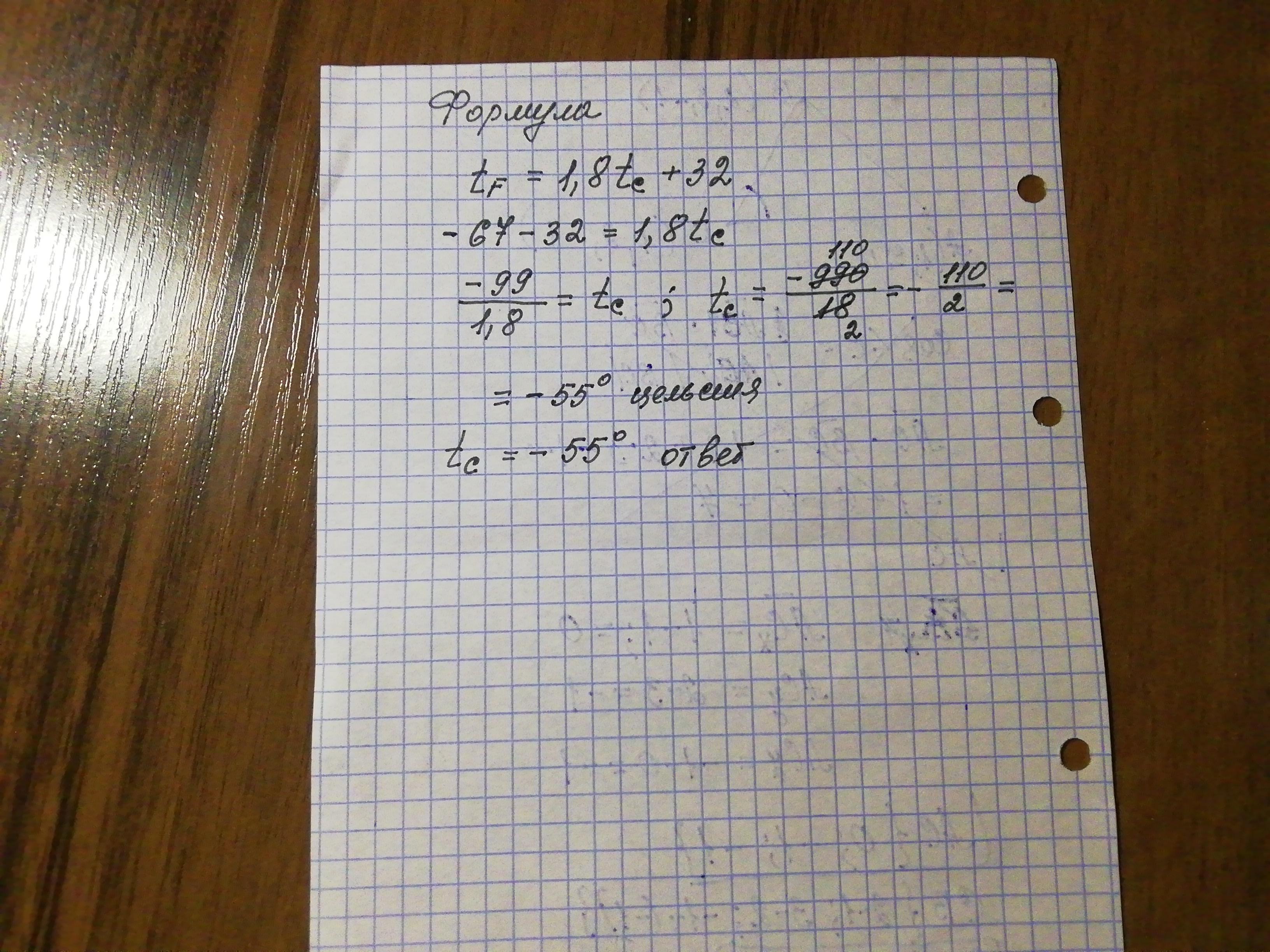 перевести значение температуры по шкале цельсия в шкалу фаренгейта позволяет tF=1,8tc+32, где tc температура в градусах цельсия, tF -температура в градусах фаренгейта. скольким градусам по шкале цельсия соответствует -67 градусов по шкале фаренгейта?