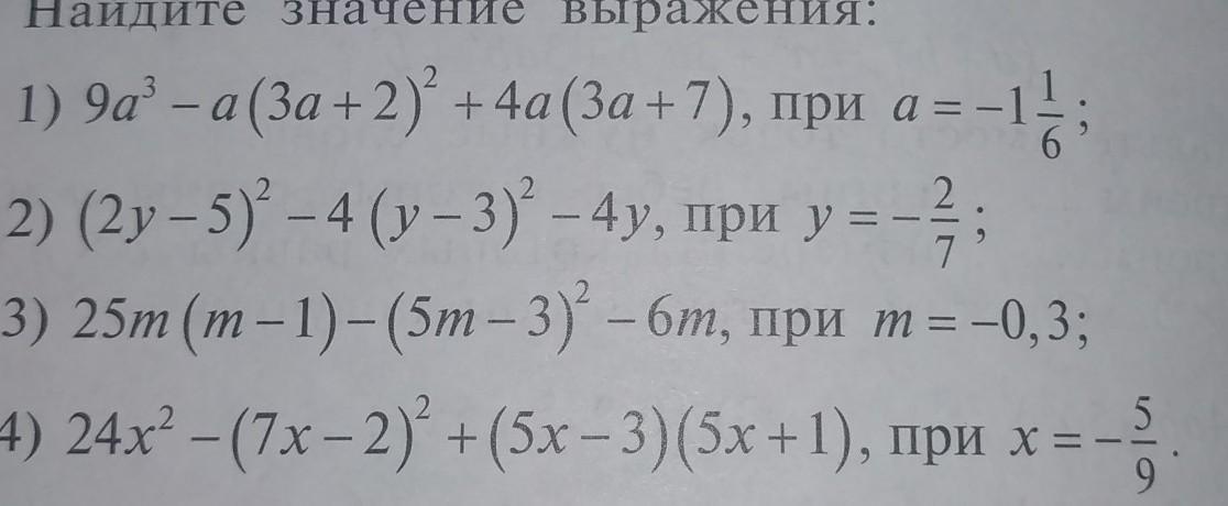 2)(2у-5)-4(у-3)-4у=2у-5-4у+12-4у=-6у+7,при у =-2/7=5 2/7