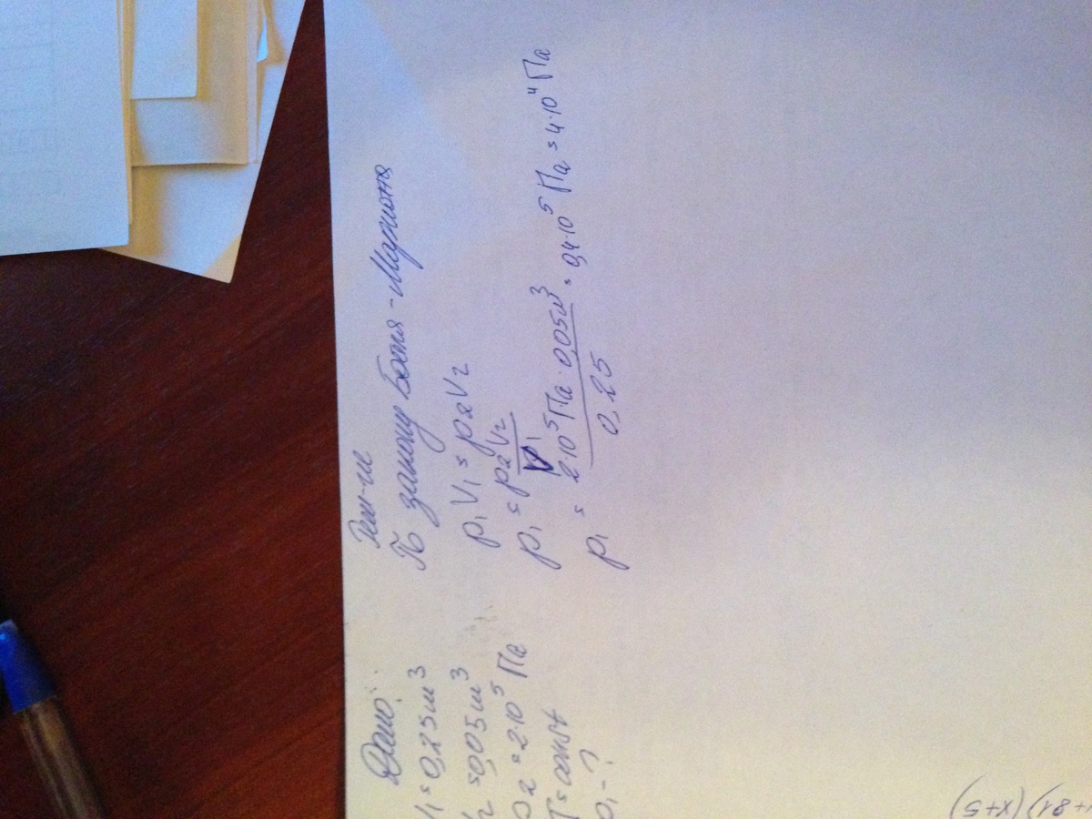 Газ, занимающий объем 0,25 м3, сжали при постоянной температуре до объема 0,05 м3. Его давление при этом стало равным 2*10^5 Па. Каким было давление в начальном состоянии?