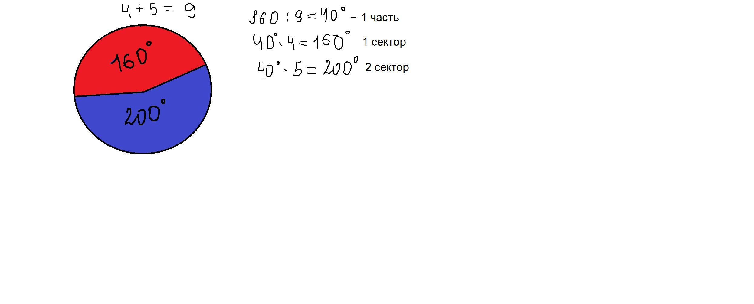 т.к сектора в отношении 4:5 то всего 4+5=9 частей