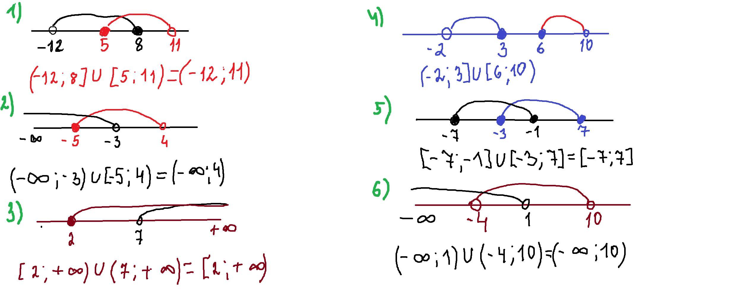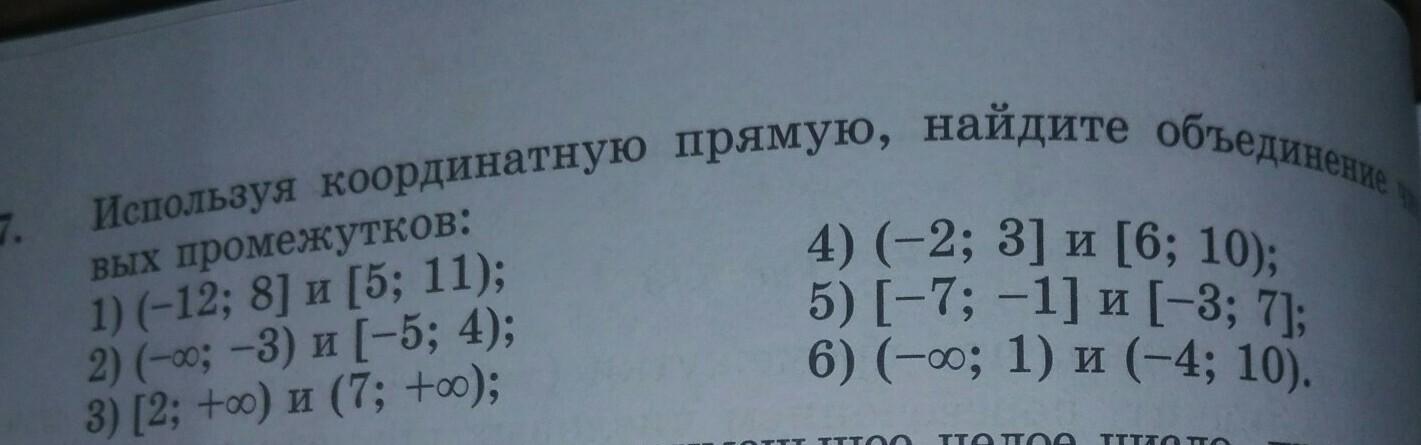 используя координатную прямую найдите объединение числовых промежутков 1) (-12; 8] и [-5; 4) и так далее