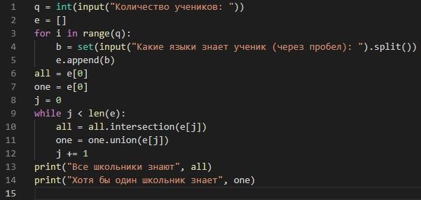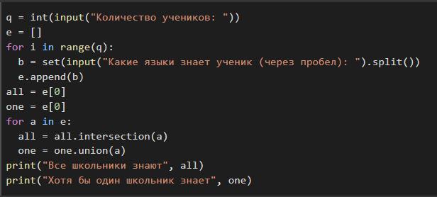 b = set(input("Какие языки знает ученик (через пробел): ").split())