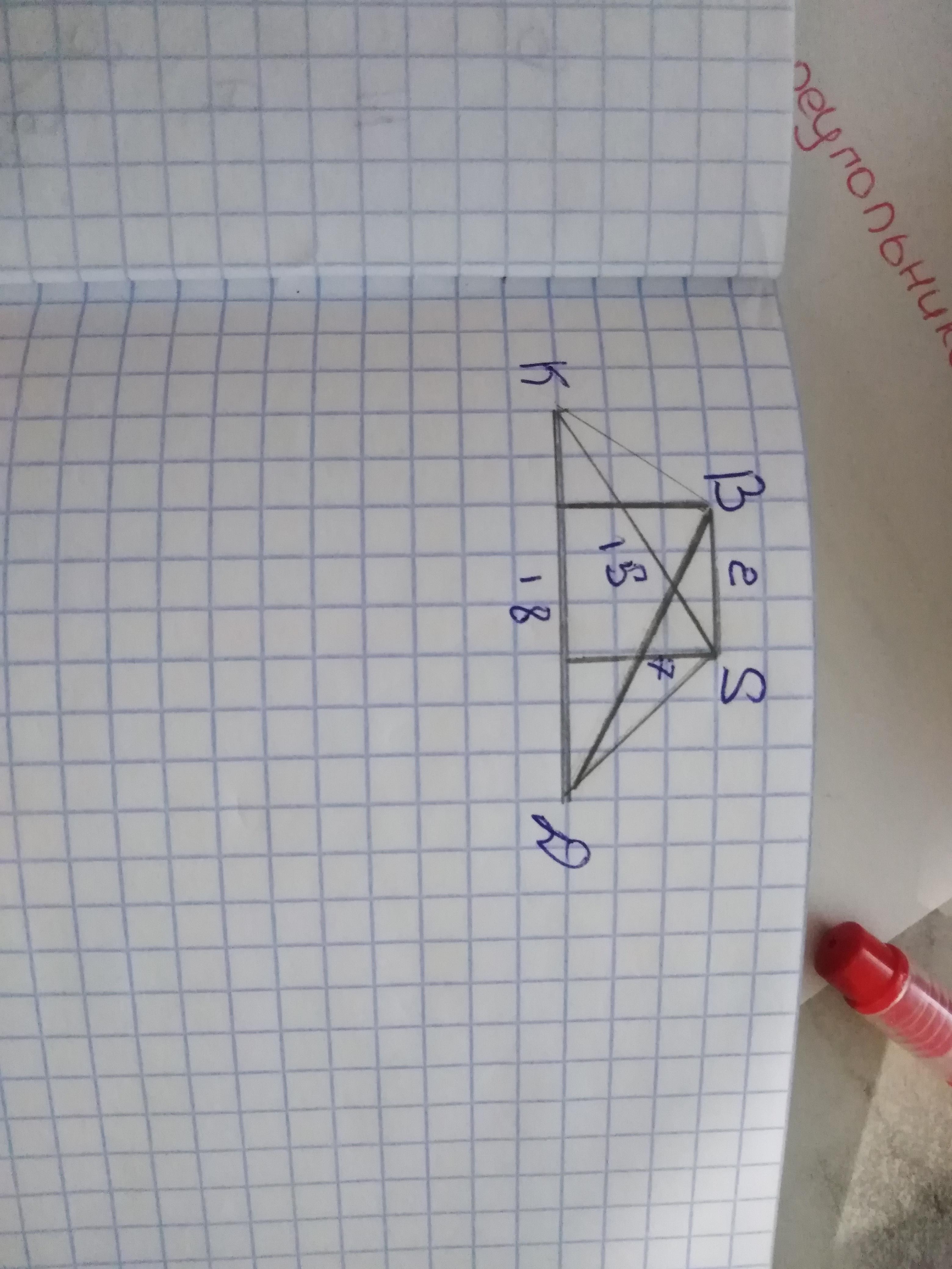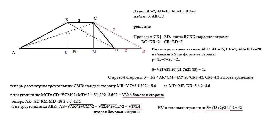 В трапеции основания равны 2 и 18. Диагонали 15 и 7