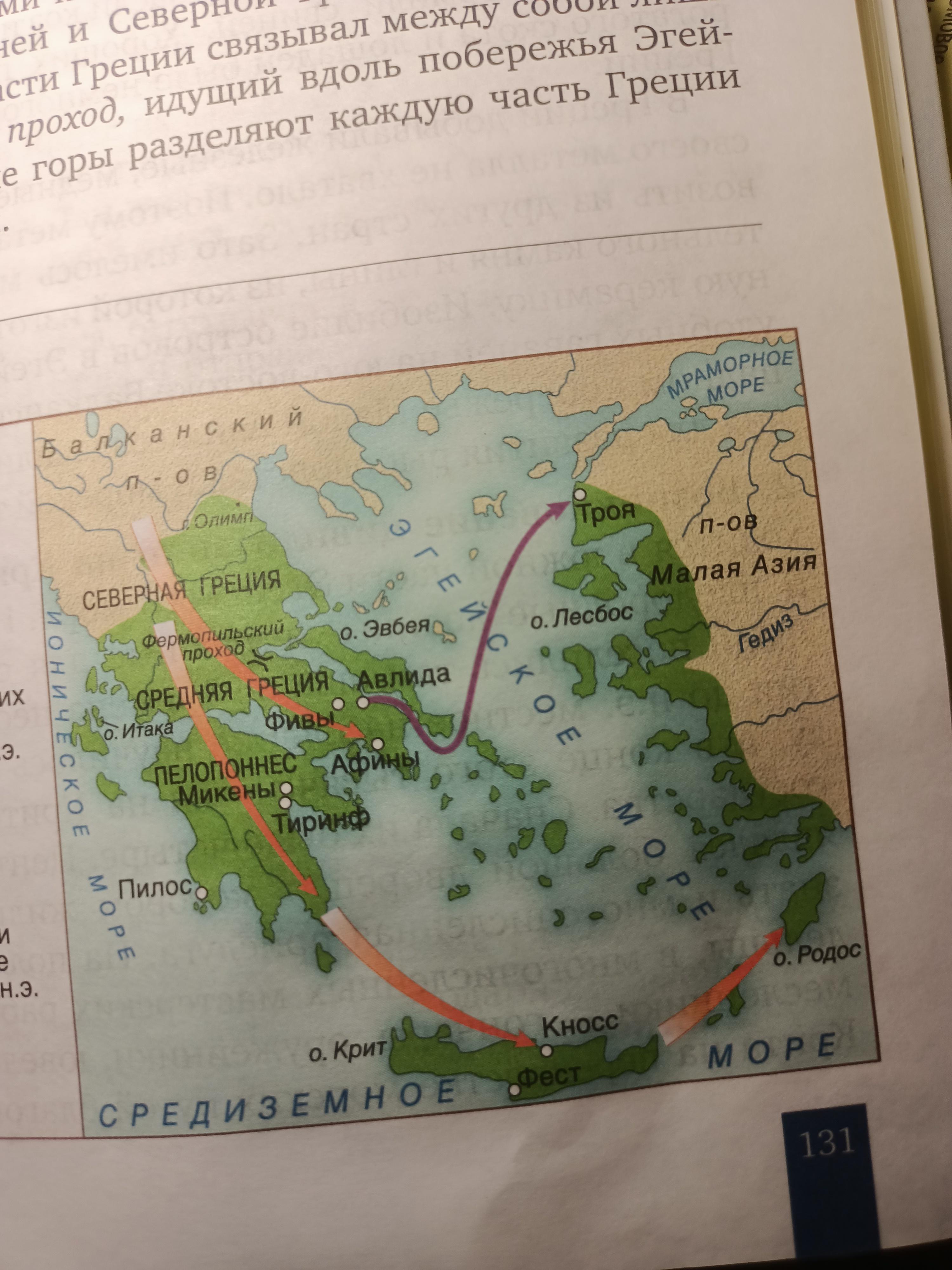 1. Используя карту на с. 131(прикреплена ниже), охарактеризуйте природные условия Греции и основные занятия её населения.
