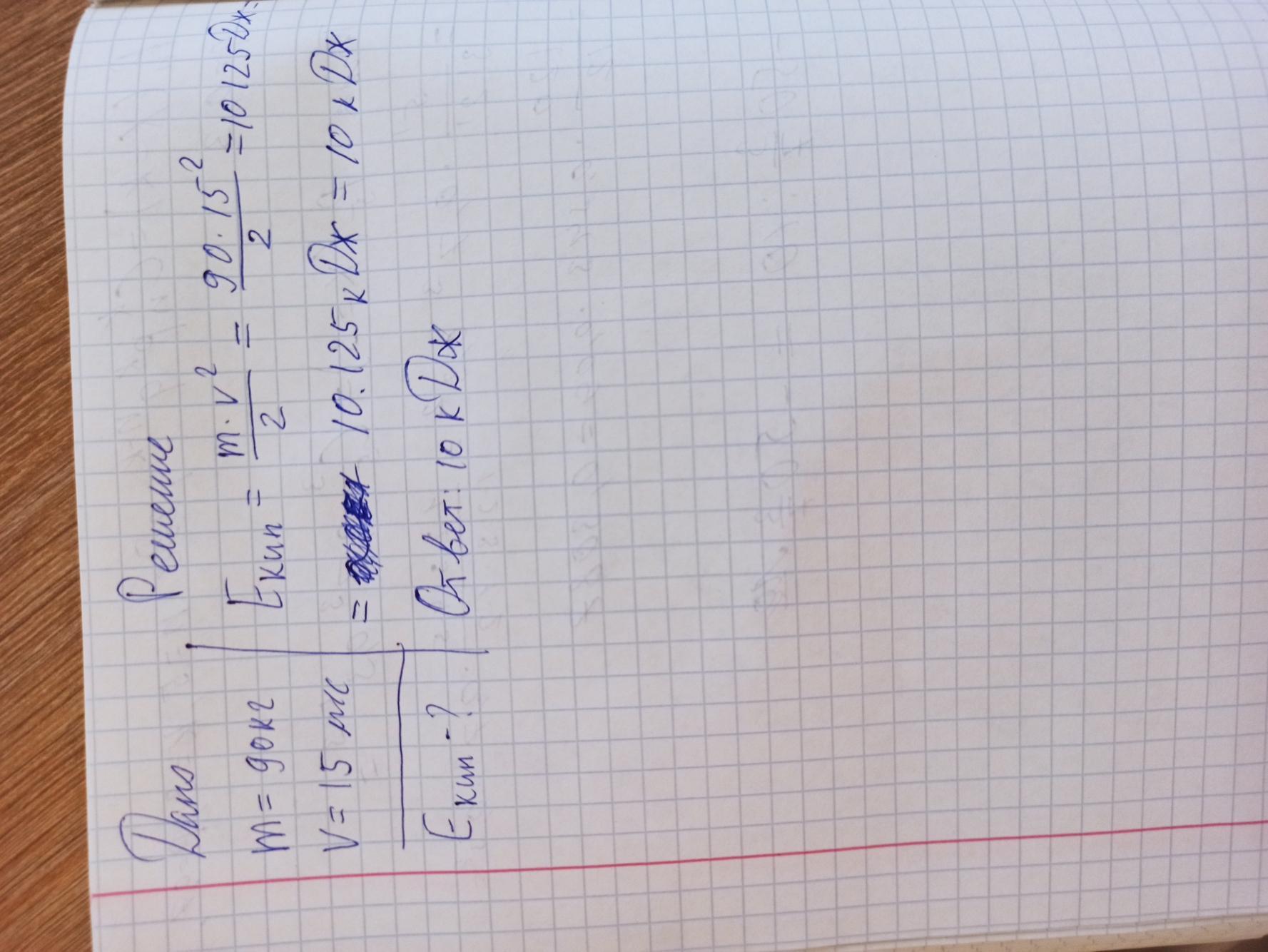 Какой кинетической энергией обладает велосипедист, масса которого вместе с велосипедом составляет 90 кг, а скорость движения равна 15 м/с?