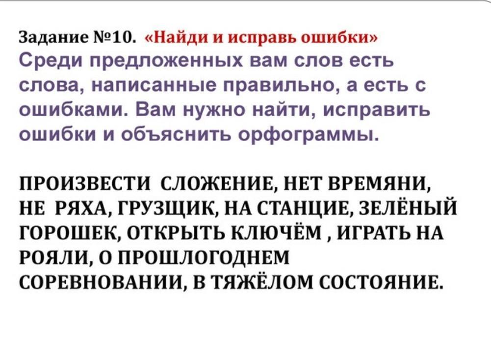 Произвести сложение,нет времени,неряха, грузчик,на станции,зелёный горошек,открыть ключём,играть на рояли,о прошлогоднем соревновании,в тяжёлом состоянии.