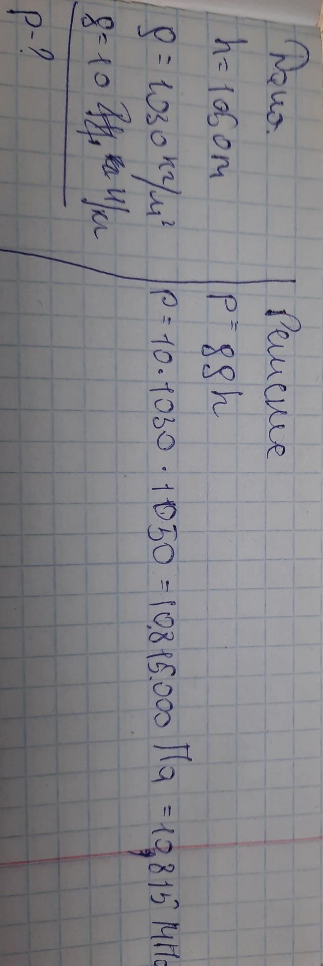 6.Определите давление воды на глубине 1050м. (ρ=1030кг/м3)