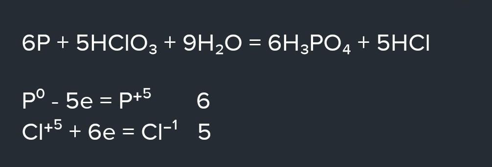 6P+5HCIO3+9H2O = 6H3PO4+5HCI