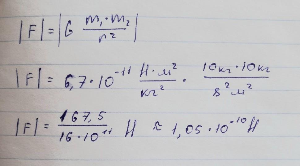 Определите модуль силы, с которой притягиваются друг к другу два однородных шара массами m=10 кг Каждый, если расстояние между их центрами r=8,0м