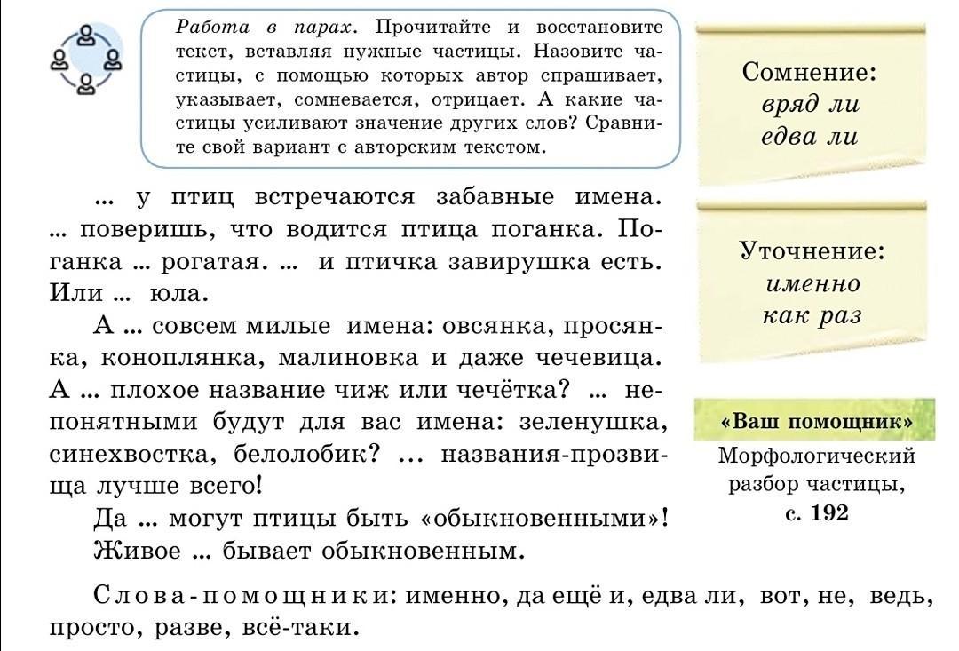 По идее так: Именно у птиц забавные встречаются имена. Едва ли поверишь, что водится птица поганка. Поганка да еще и рогатая. Ведь и птичка завирушка есть. Или просто юла. А вот совсем милые имена: овсянка, просянка, коноплянка и даже чечевица. А разве плохое название чиж или чечетка? Неужели непонятными будут для нас имена: зеленушка, синехвостка, белолобик? Все-таки названия-прозвища лучше всего! Да разве птицы могут быть "обыкновенными"! Живое не бывает обыкновенным.