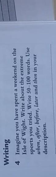 all by Writing 4 Представьте, что вы провели выходные на острове Уайт. Напишите об экстремальных видах спорта, которые вы пробовали. Напишите 50–100 слов. Используйте когда, после, до, позже, а затем в своем описании.