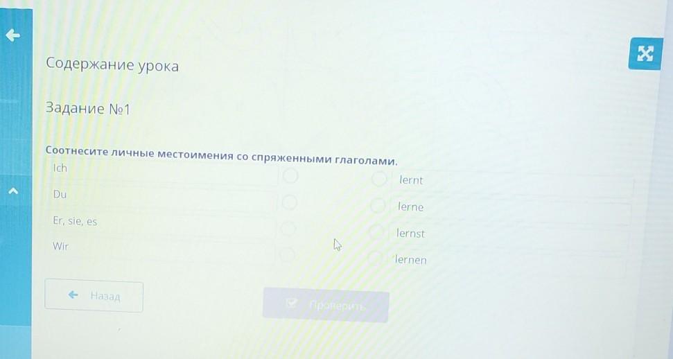 Соотнесите личные местоимения со спряженными глаголами.